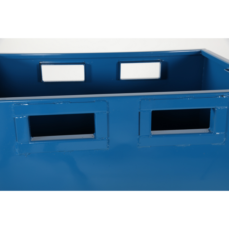 Wytrzymała konstrukcja: Wykonany z solidnej stali i wykończony odporną na uszkodzenia powłoką proszkową w uderzającym niebieskim kolorze RAL 5019, ten kontener jest zbudowany, aby wytrzymać trudy intensywnej eksploatacji przemysłowej.