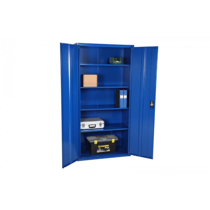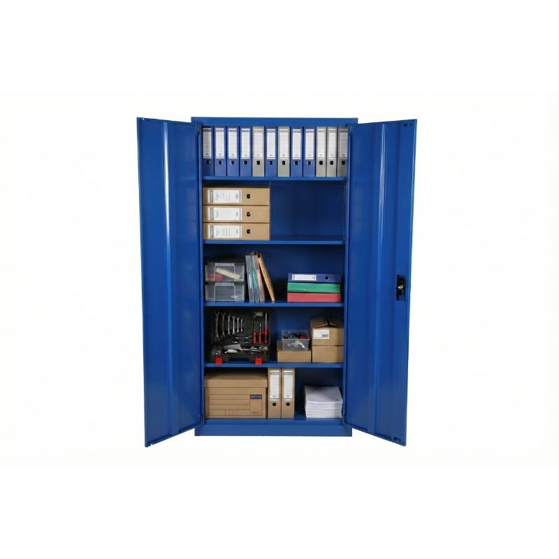 Szafa metalowa 1800x800x400 Stable to niezwykle wytrzymała i funkcjonalna szafa, która dzięki sprytnemu projektowi, może być łatwo złożona bez użycia śrub i narzędzi. Jest to idealne rozwiązanie dla osób, które szukają praktycznego i trwałego mebla do przechowywania swoich rzeczy.